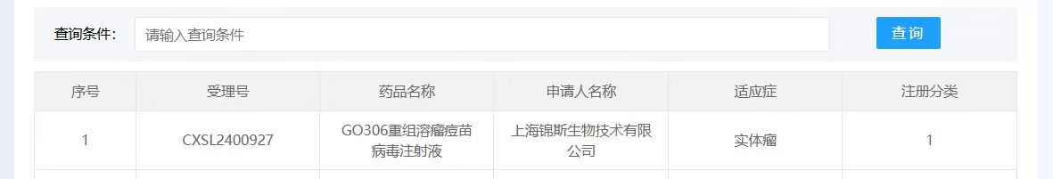 2025年3月28日“GO306重組溶瘤痘苗病毒注射液”項目(英文:GO306 Recombinant Oncolytic Vaccinia Virus Injection)獲得一類(lèi)新藥臨床批件。